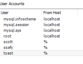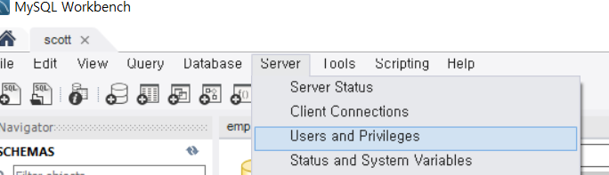 1. 상단 Server 탭 → Users and Privilleges