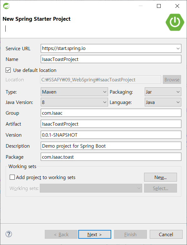 - 단독으로 실행이 가능한 스프링 애플리케이션 생성