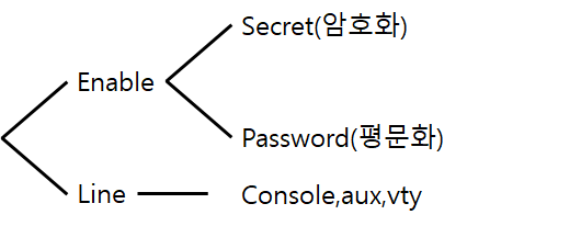 -enable(관리자 패스워드) / line (접속을 관리하기 위한 패스워드)
