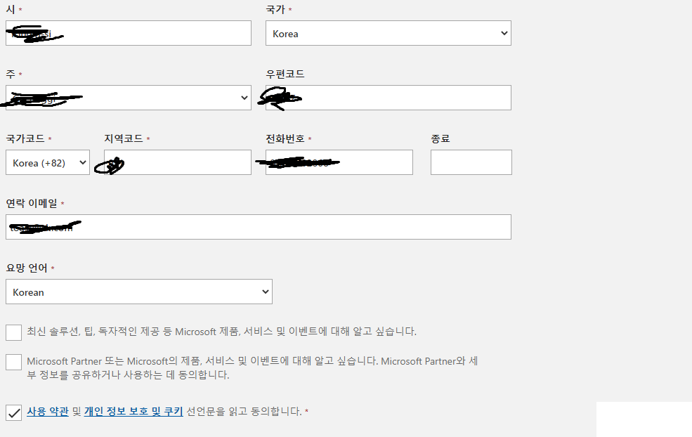 나의 경우 지역코드는 010 전화번호는 xxxx-xxxx 방식으로 작성하였다.