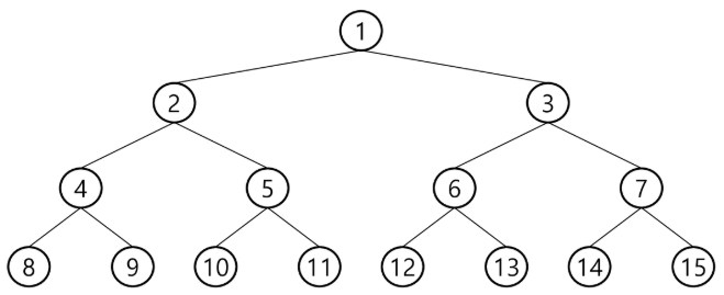 - 루트를 1번으로 하여 (2ⁿ +¹ -1)까지 정해진 위치에 대한 노드 번호를 가짐